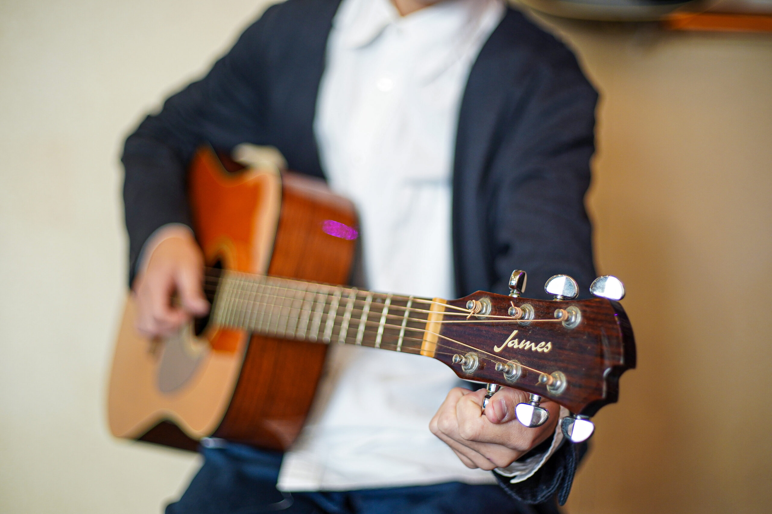 ギターの持ち方や指の使い方、コード・リズムなど、初歩から丁寧に指導します。
